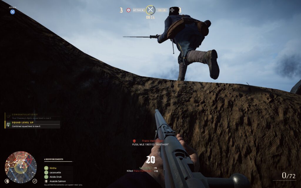 I like how there is individual units and factions of soldiers that fought in the battlefield of verdun. Each with their own purposes such as scouts,machine gunners and more. With each unit/squad member having intended play styles and unique items to use based upon their classes. There is even being given what equipment they had at a specific year of the war depending how far you get in game. On frontlines mode this is ingrained even more as the game also provides 3 different loadout options. Each loadout is designed with a different purpose.