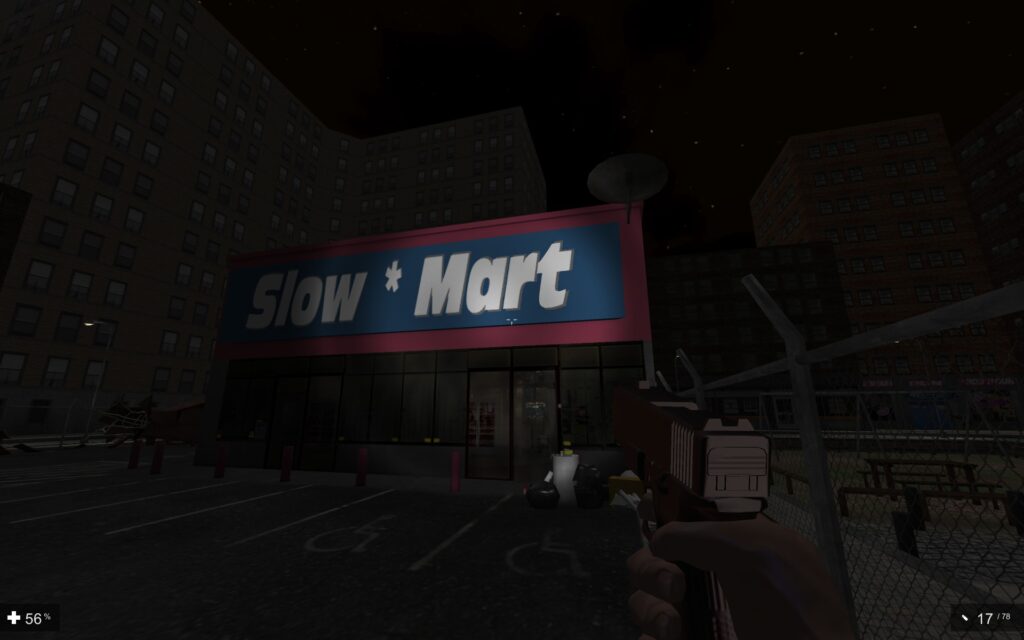 The game level structure is strange, uninspiring and often makes no sense. As previously stated you have to find out what to do in the flat in order to get to the next level. But in game after you do tasks to proceed. The game gives you a level to play on. The first level is set in a computer game that the main character is playing on. This sections starts off in sewers fighting through hordes of zombies. After you manage to escape the sewers you find yourself in a city centre. The city centre has hordes of zombies that chase you. Whilst you are trying to find parts to repair a van in order to escape.